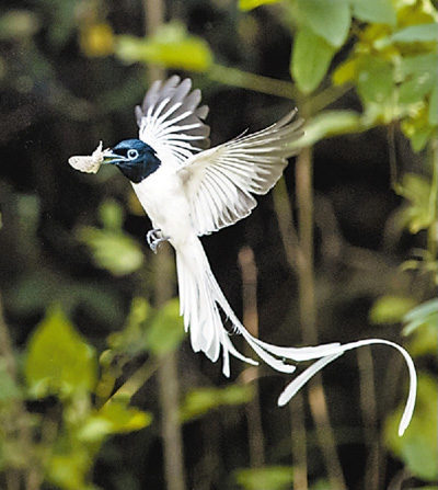 一只壽帶在京山縣濕地捕食。 |